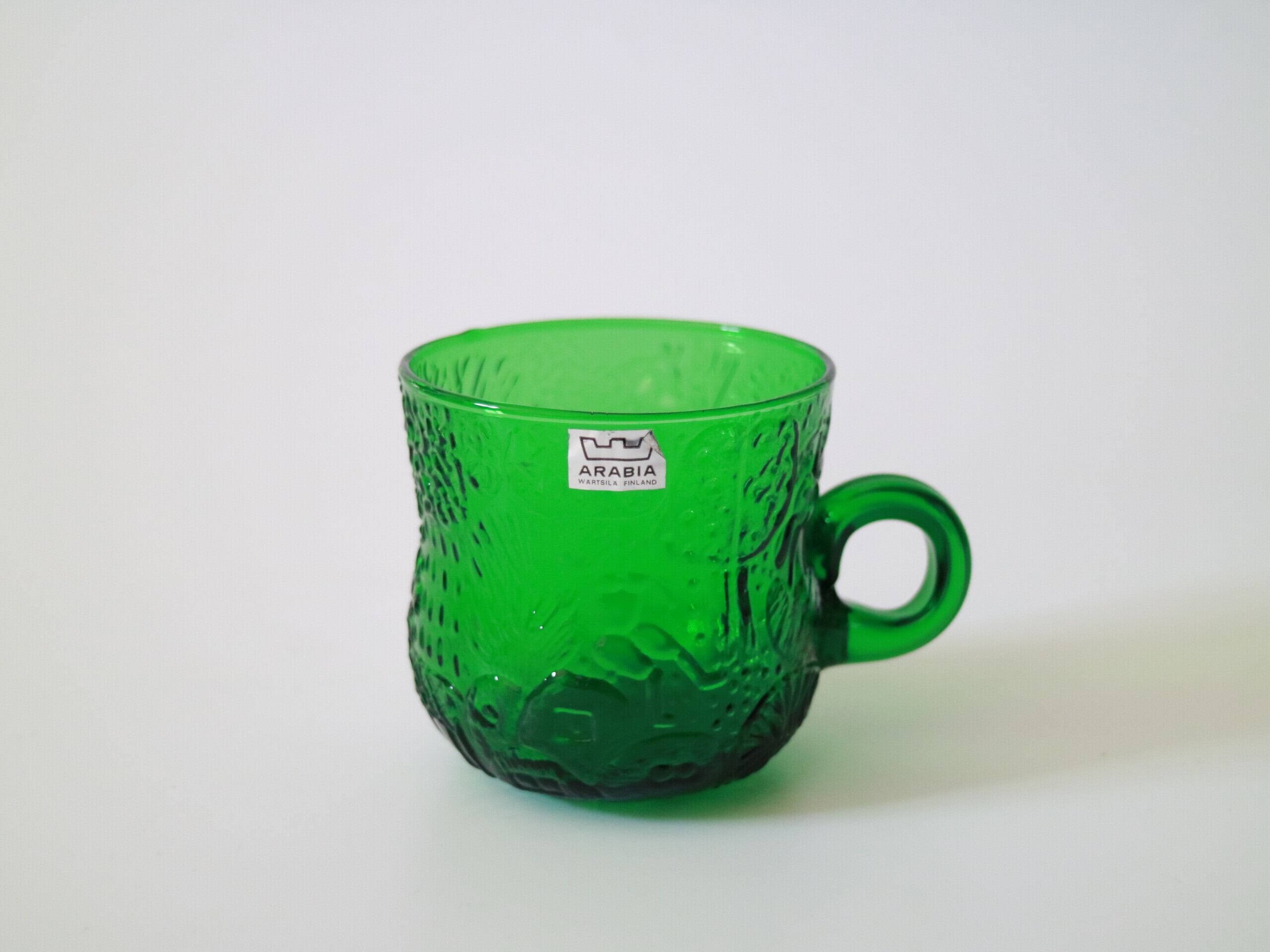 ARABIA社 Faunaシリーズの持ち手付きタンブラーです。フィンランドを代表するガラスデザイナーOiva Toikka (オイバ トイッカ) によるデザインです。