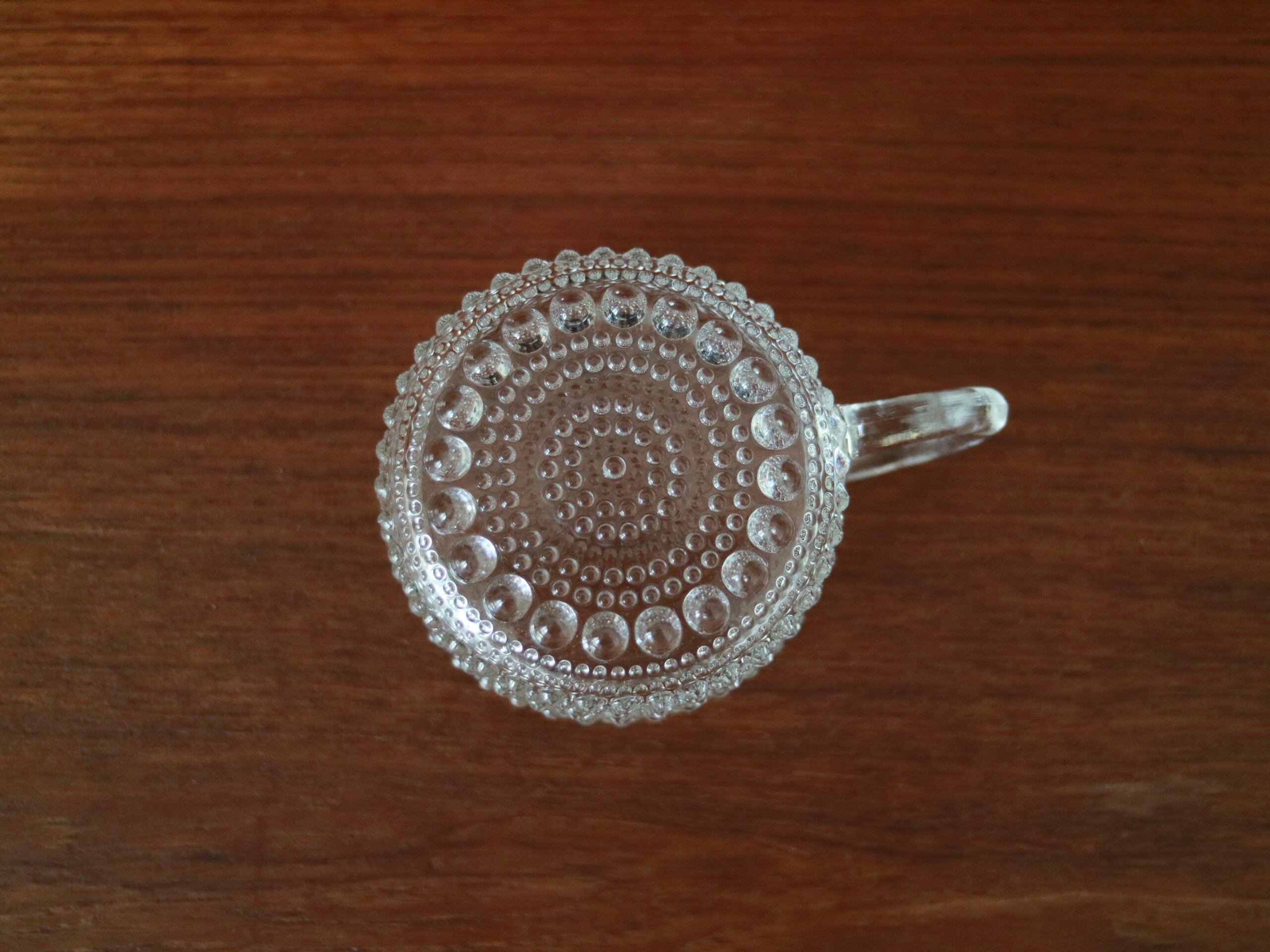 ARABIA社 カステヘルミシリーズの持ち手付きカップです。「露のしずく」を意味するカステヘルミ。現在でも生産されている大変人気のシリーズですが、こちらのカップは1988年で廃盤となったお品となっております。粒が高く密集しているので、光の反射でキラキラと輝きとても美しいです。
