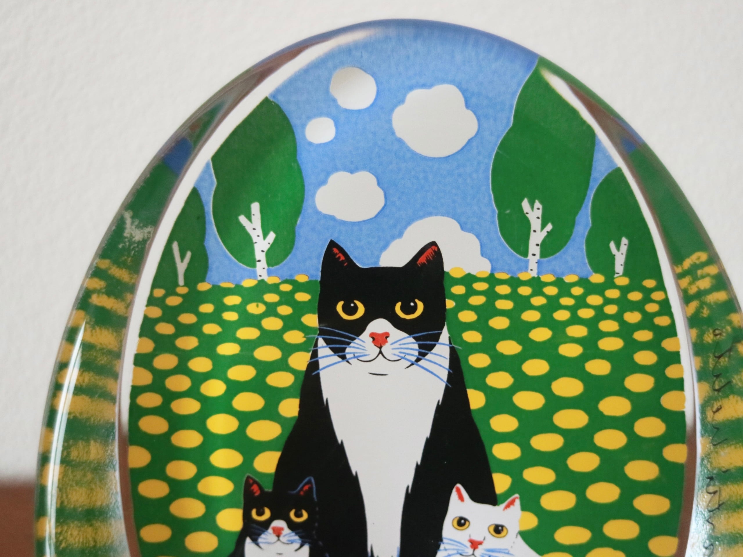 Martti Lehto (マルッティレート)は、フィンランドの画家です。彼のネコをモチーフにした作品は、世界中で愛されています。その中でも、このガラスカードは、彼の代表的な作品の一つと言えます。ガラスの透明感、美しいライン、細部へのこだわり等々、彼の才能が見事に表されています。 このカードを手に取ってみると、適度な重量感を感じることができます。