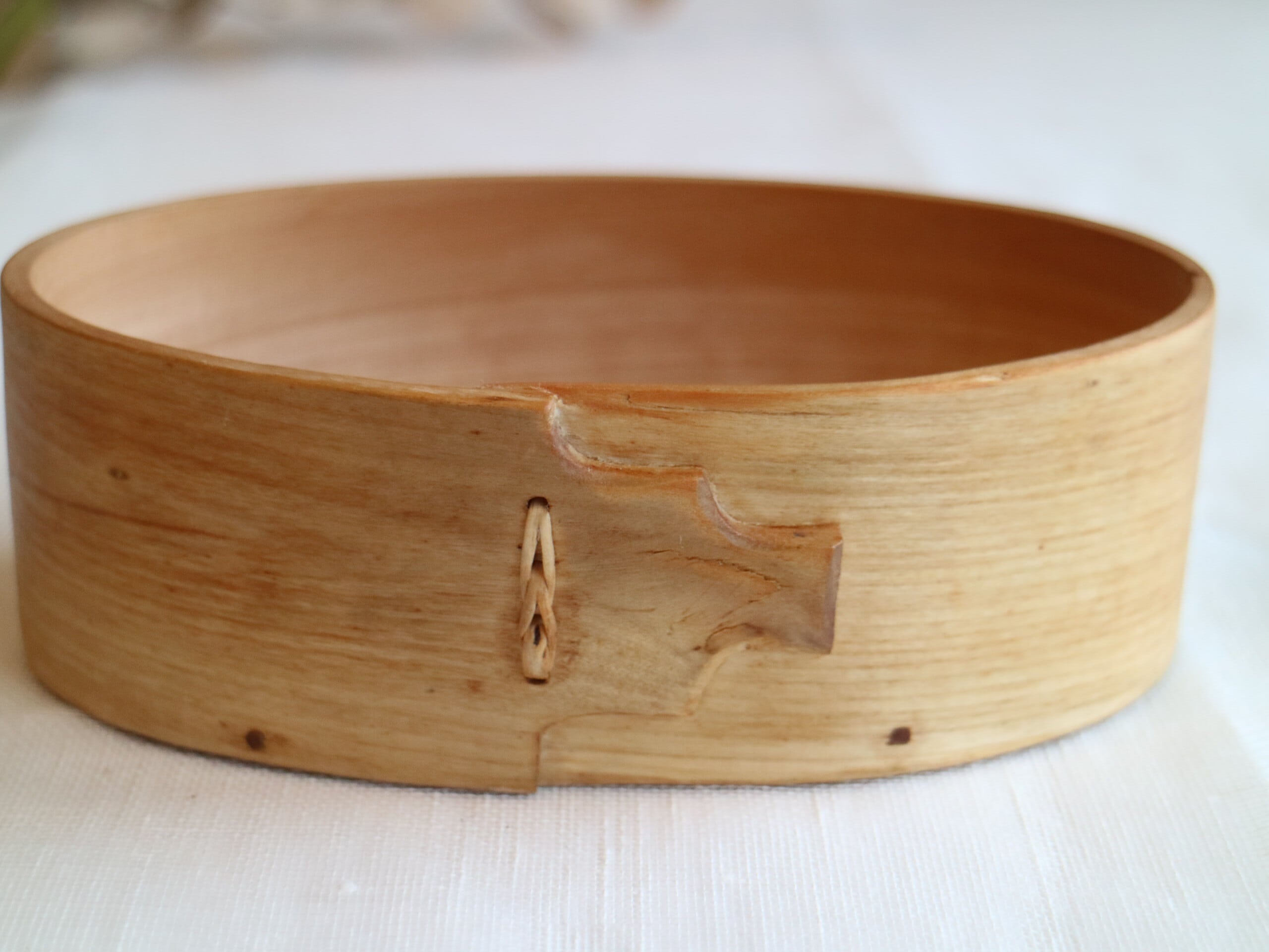 日本でいう曲げわっぱのようなもので、つなぎ目部分を、木根や蔓など使って縫い留めています。