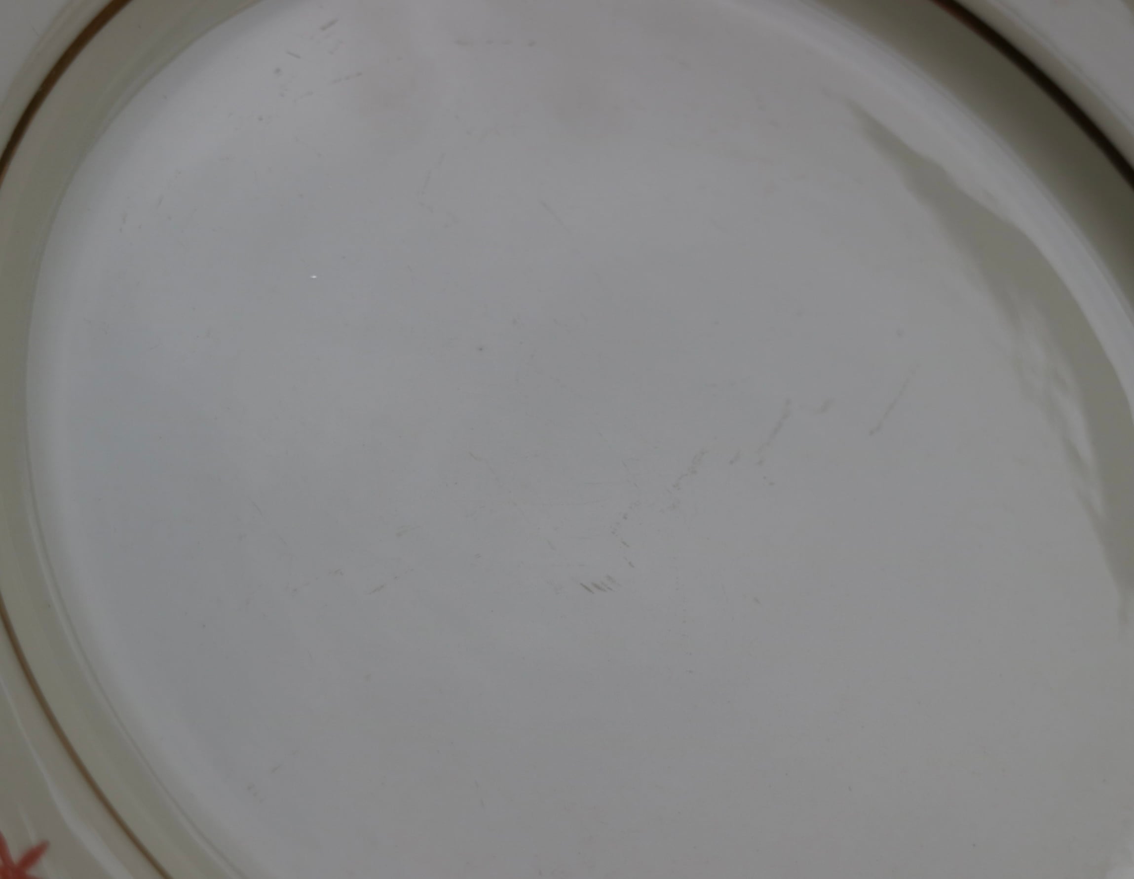 写真9枚目 経年使用に伴うカトラリー跡やプリントの擦れなどが見受けられます。しかしながら、ヒビや欠けなどの大きなダメージはなく、70-90年前のお品としてはとても良いヴィンテージコンディションを保っています