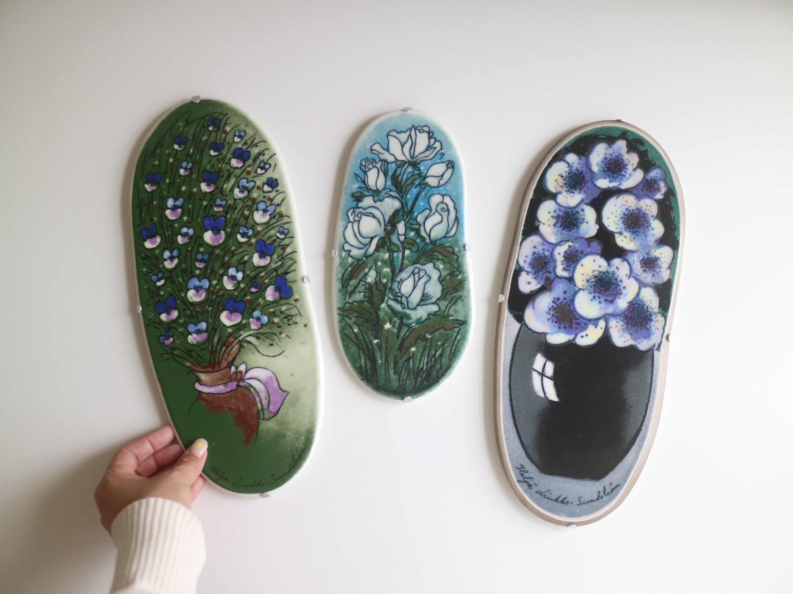 ARABIA社製、Heljä Liukko-Sundström(ヘルヤ・リウッコ・スンドストロム)がデコレートデザインしたウォールプレートです。