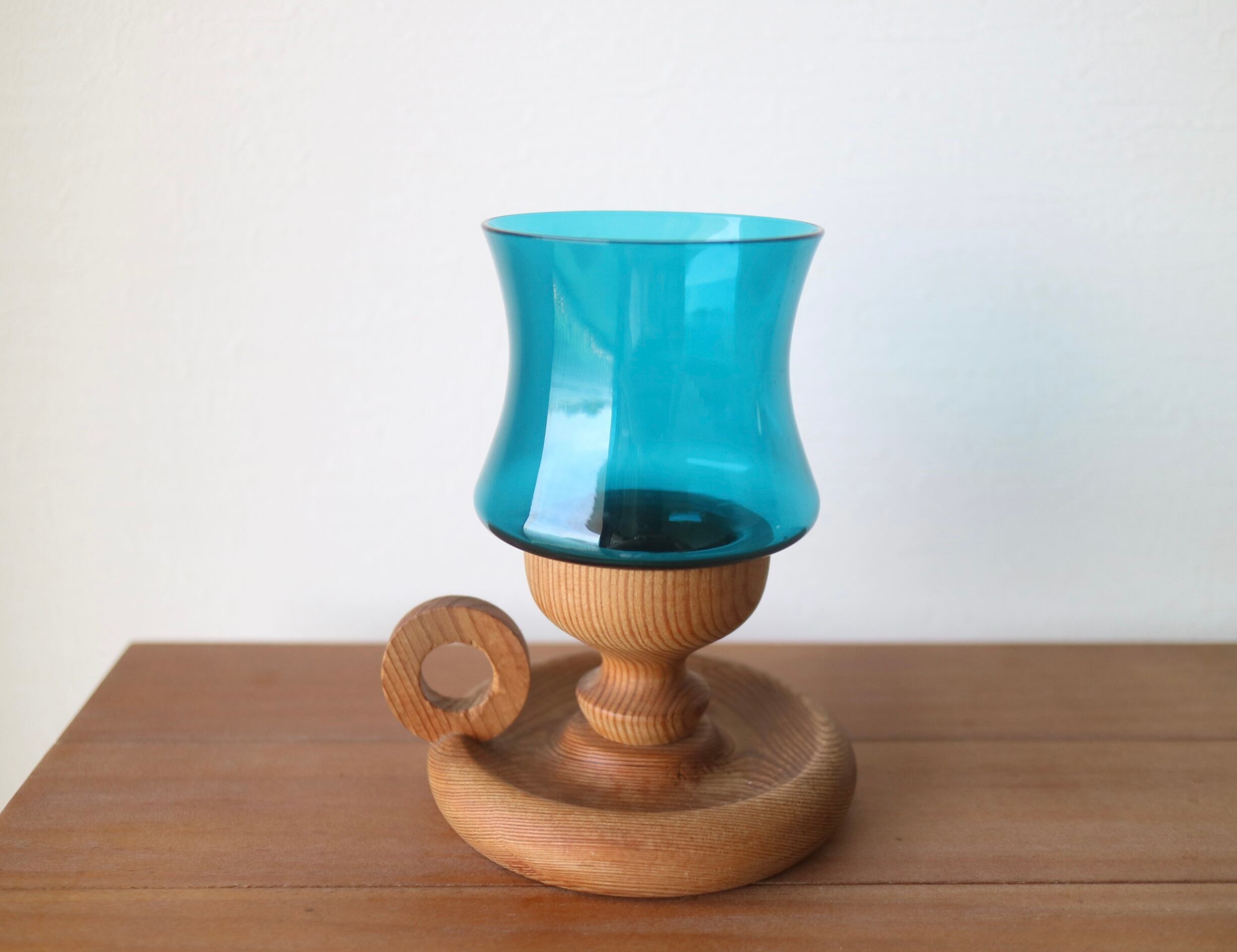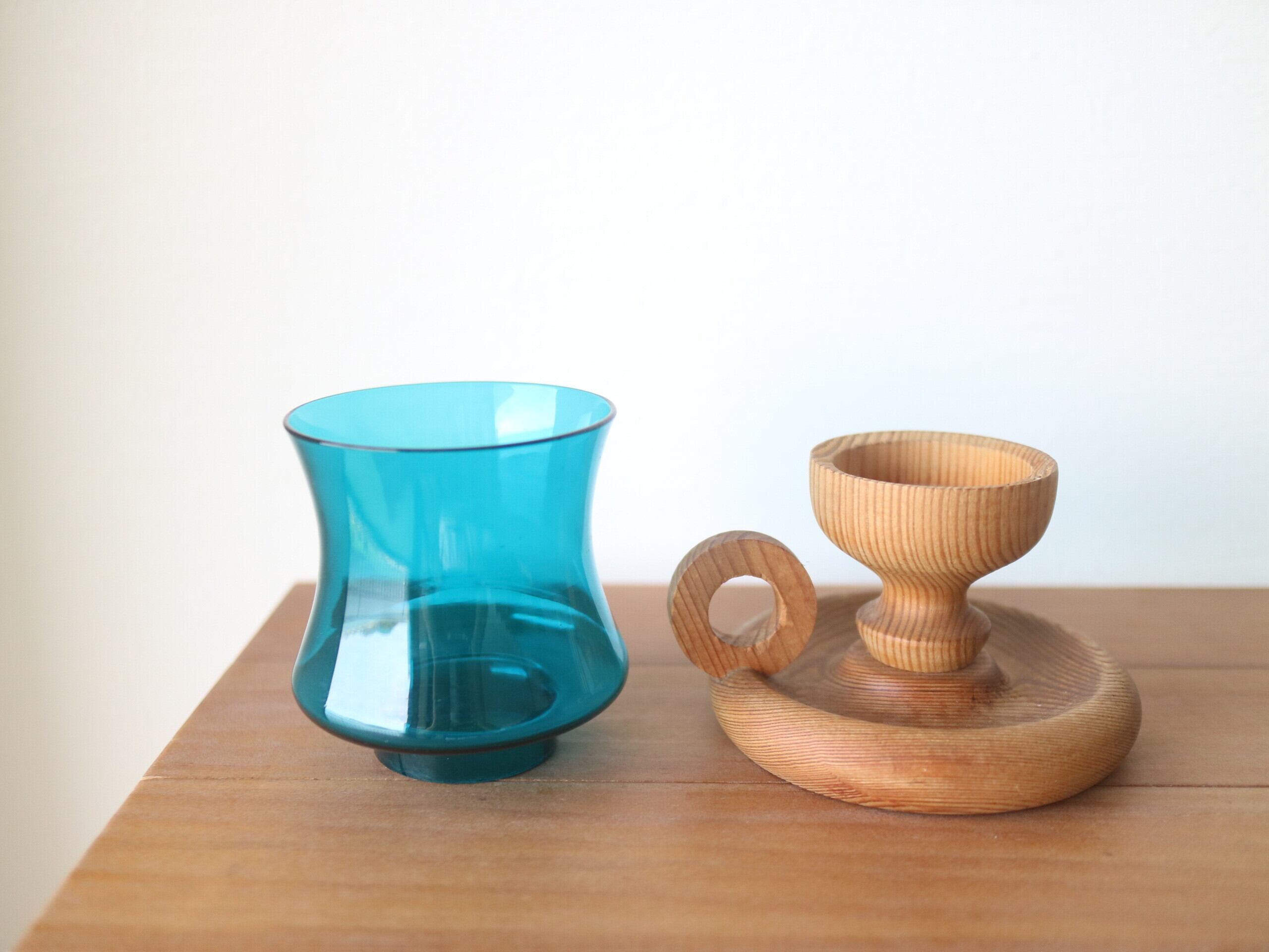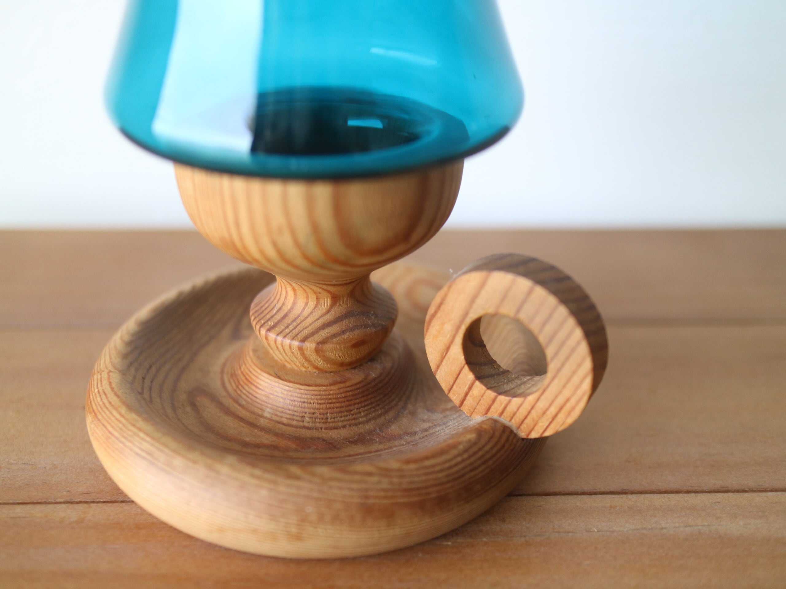 スウェーデンで見つけたガラスと木のキャンドルスタンド No.5114