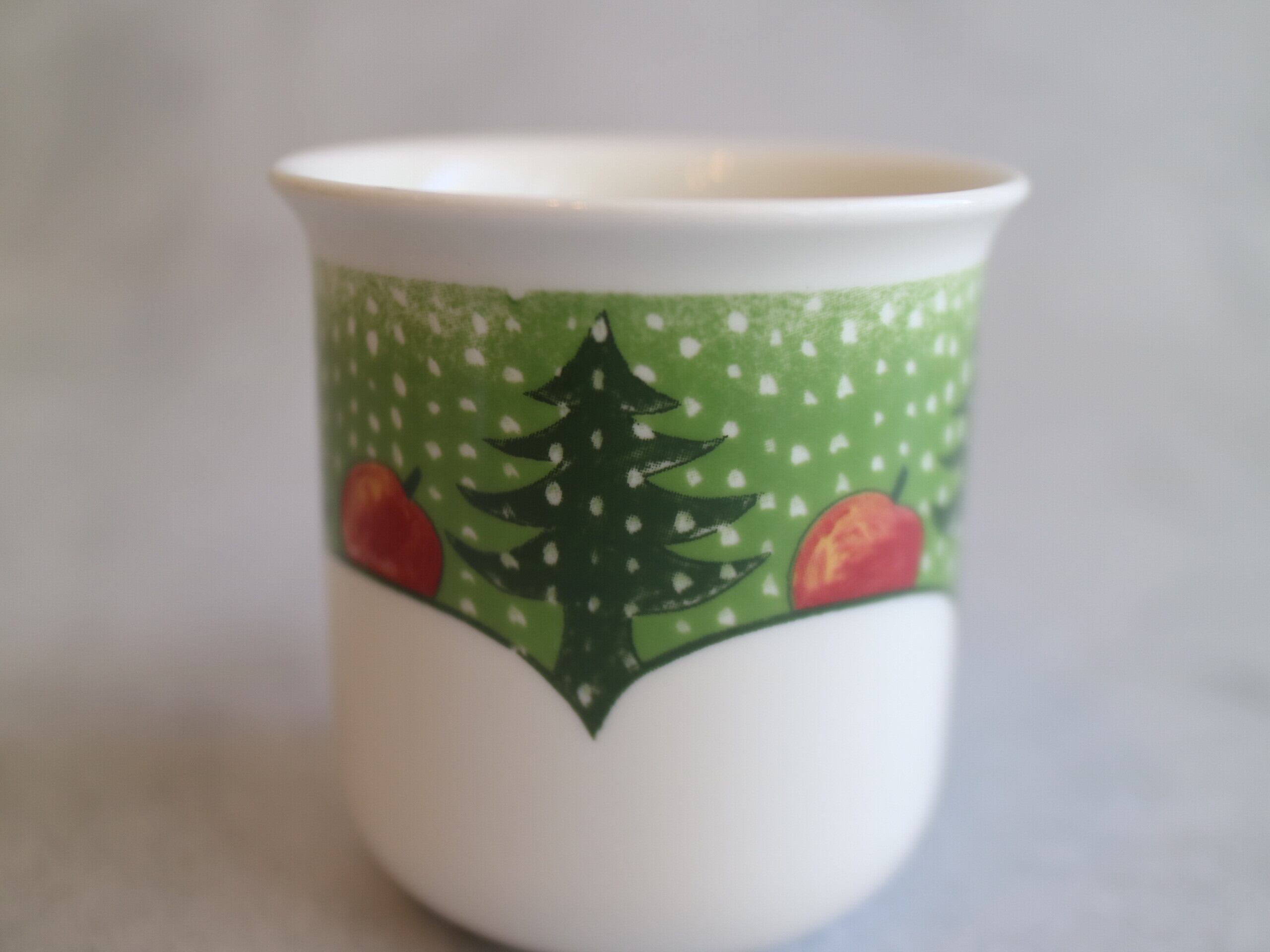 マグカップにはモミの木・りんご・雪が描かれたクリスマスマグカップです。