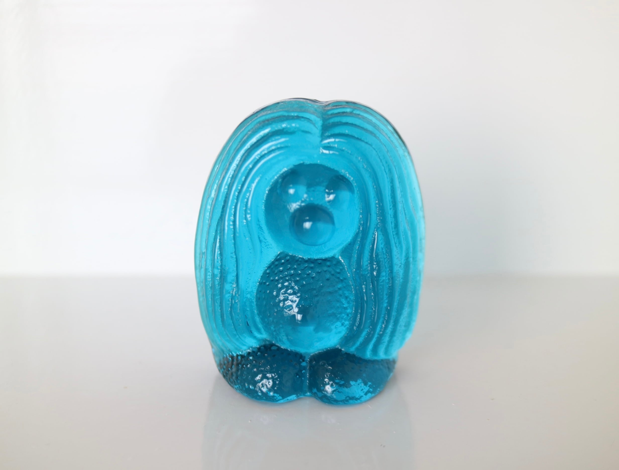 スウェーデン Bergdala Glasbruk (ベルグダラガラス工房) によって製造されたトロールのガラスオブジェです。クリアガラスのトロールは現地でもよく見かけますが、こちらのブルーカラーは比較的流通が少ないお品です。