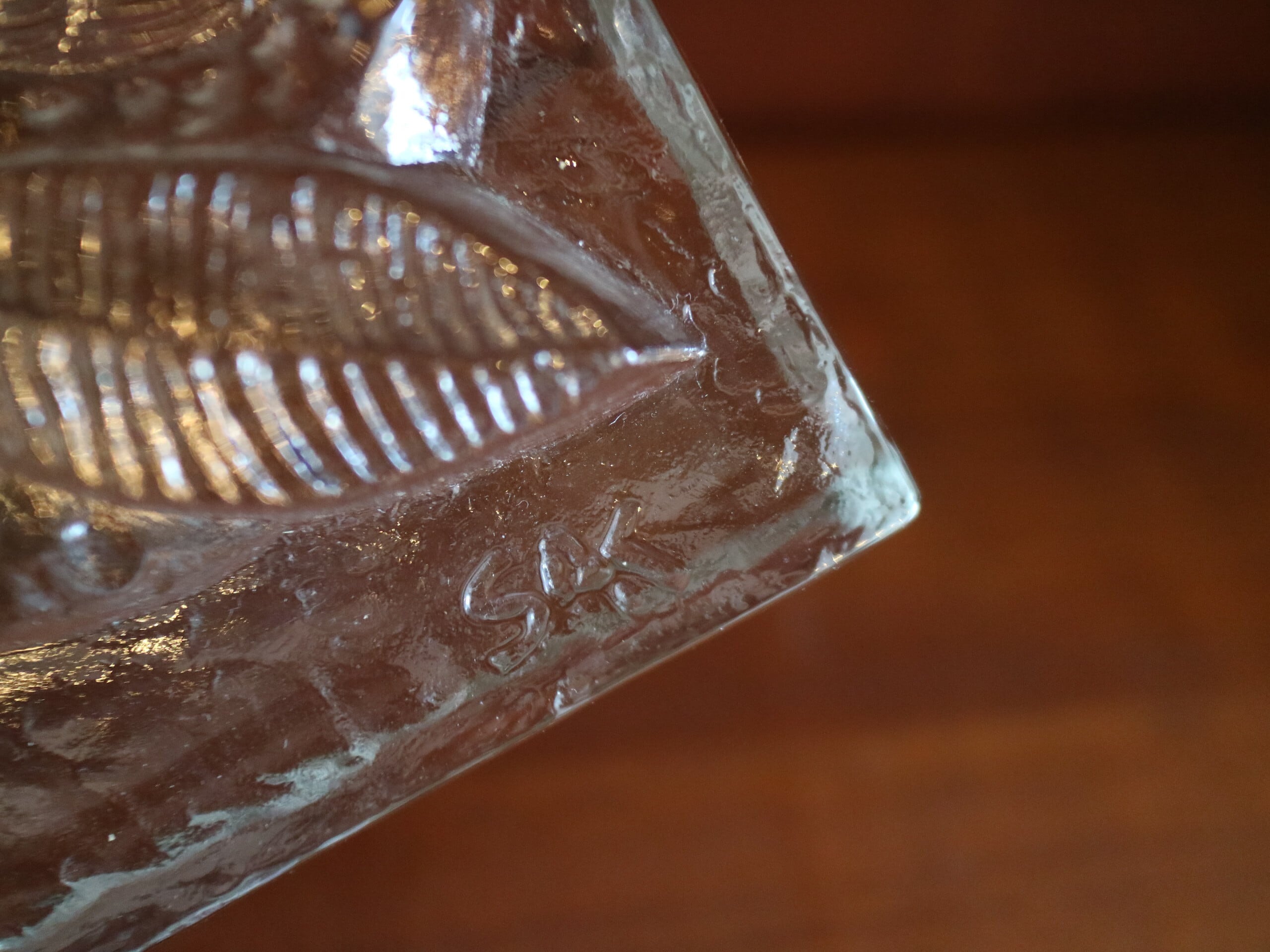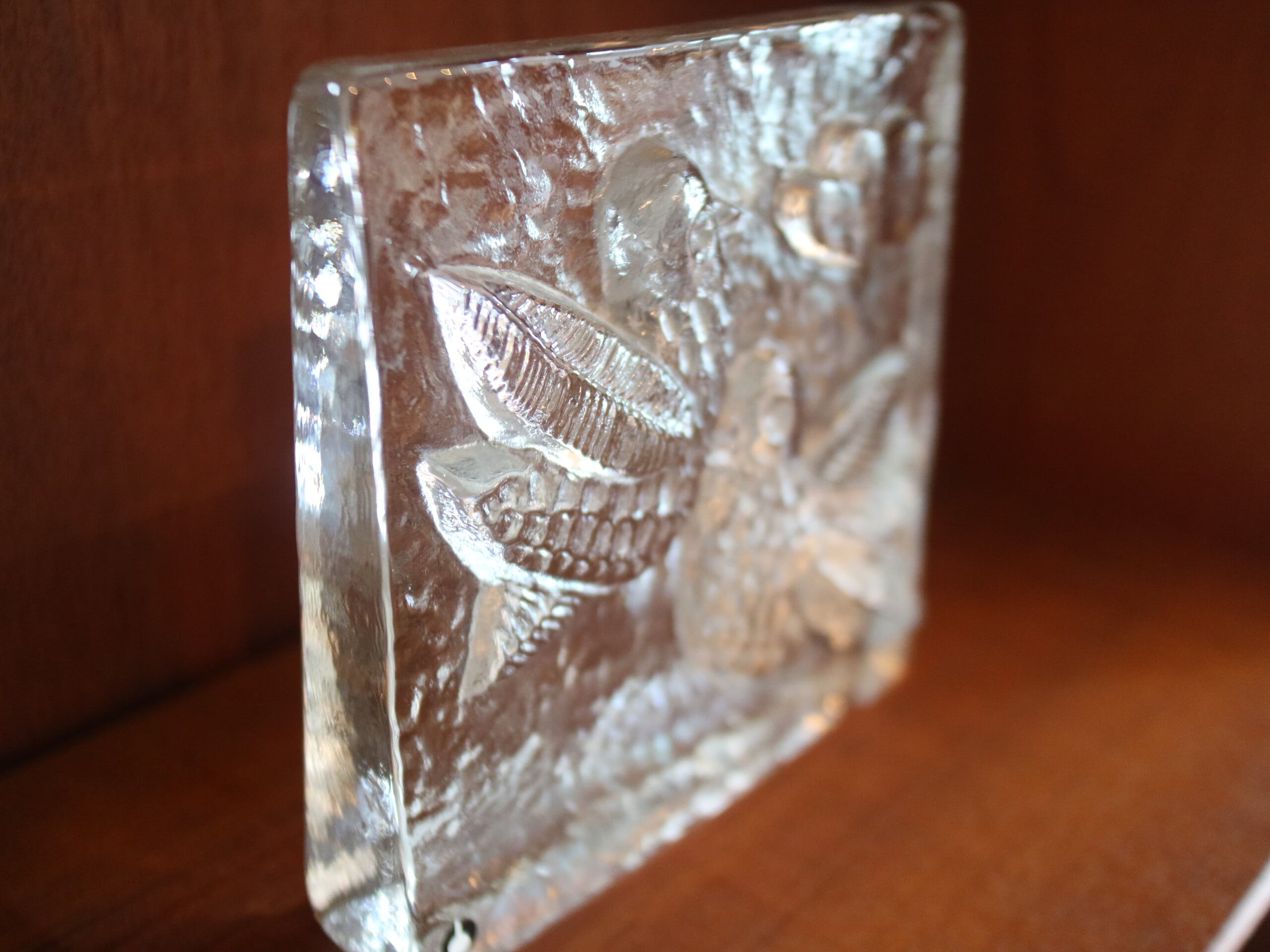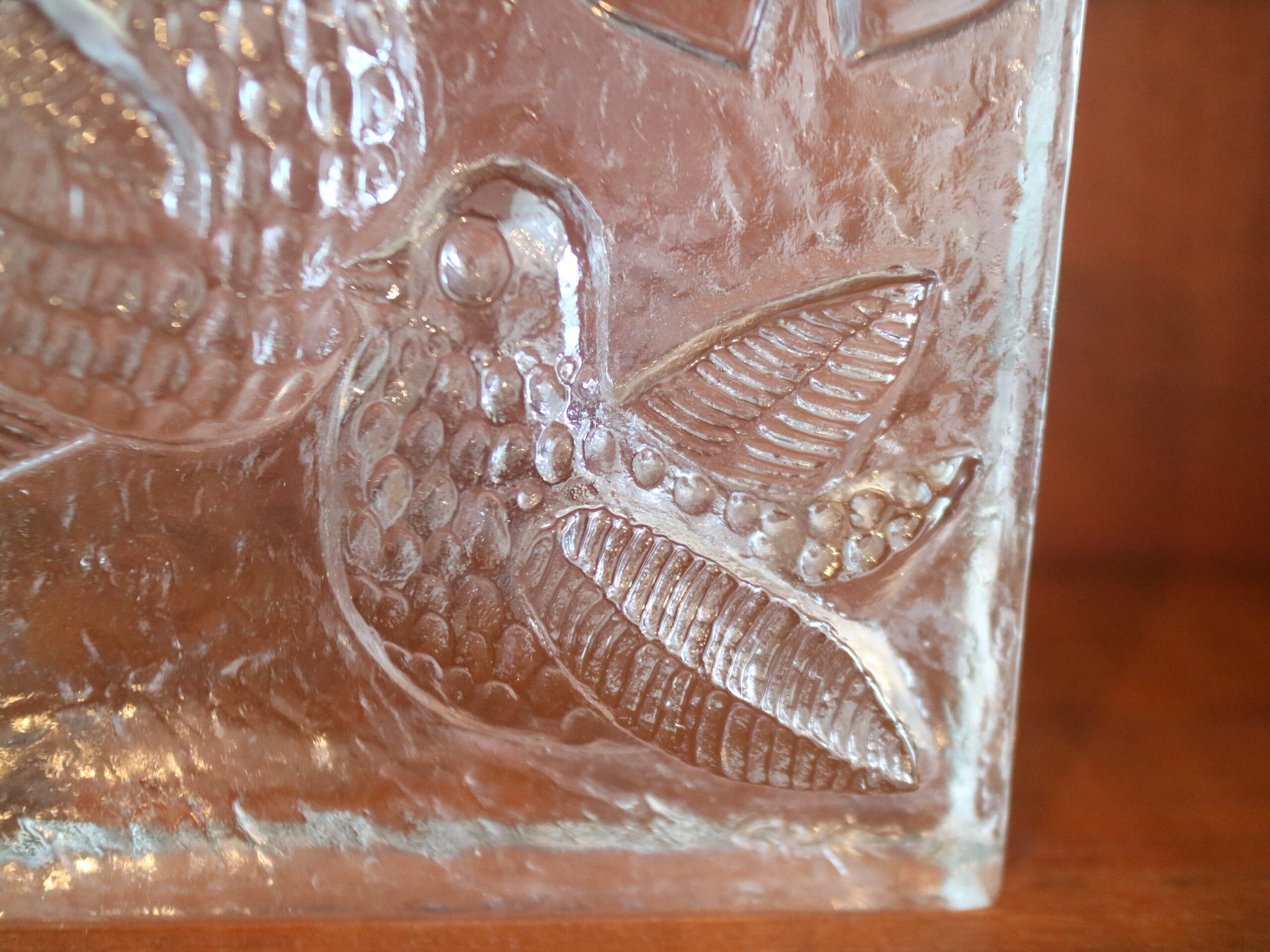 スウェーデン Pukeberg社製のガラスのオブジェです。オブジェには エンボス加工でつがい鳥とハートマークが施されています。