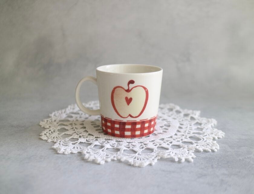 こちらのマグカップにはリンゴが描かれており、カットされた断面の種がハートになっているのがとても可愛らしい作品です。Immonenらしい優しいタッチで、水彩画のようなグラデーションもお楽しみいただけます。