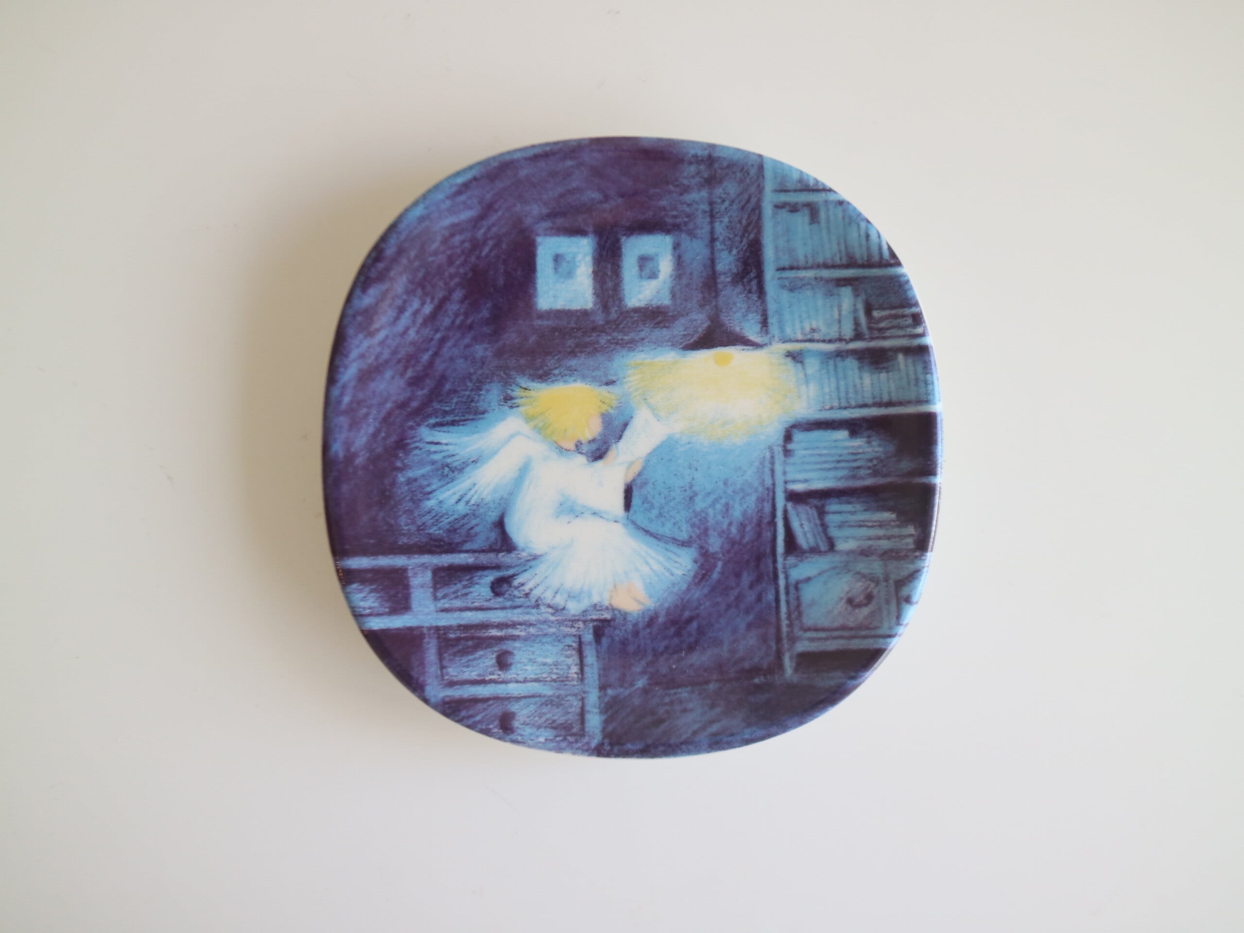 プレートにはランプの下で机に座って本を読んでいる天使が描かれています。みんなが寝静まった夜中にこっそりと読書を楽しんでいるのでしょうか。