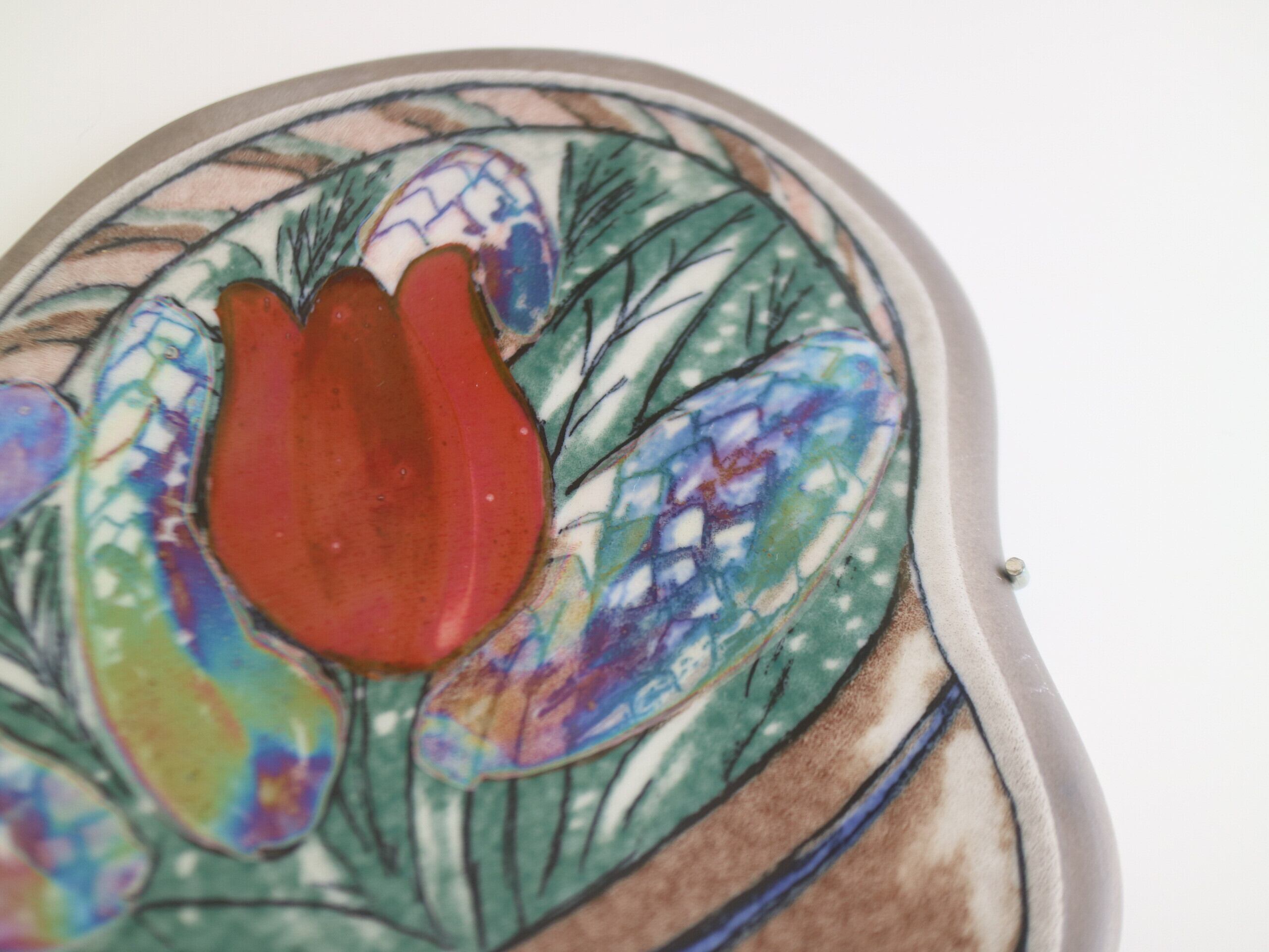 ARABIA社製、Heljä Liukko-Sundström(ヘルヤ・リウッコ・スンドストロム)がデコレートデザインしたチューリップのウォールプレートです。