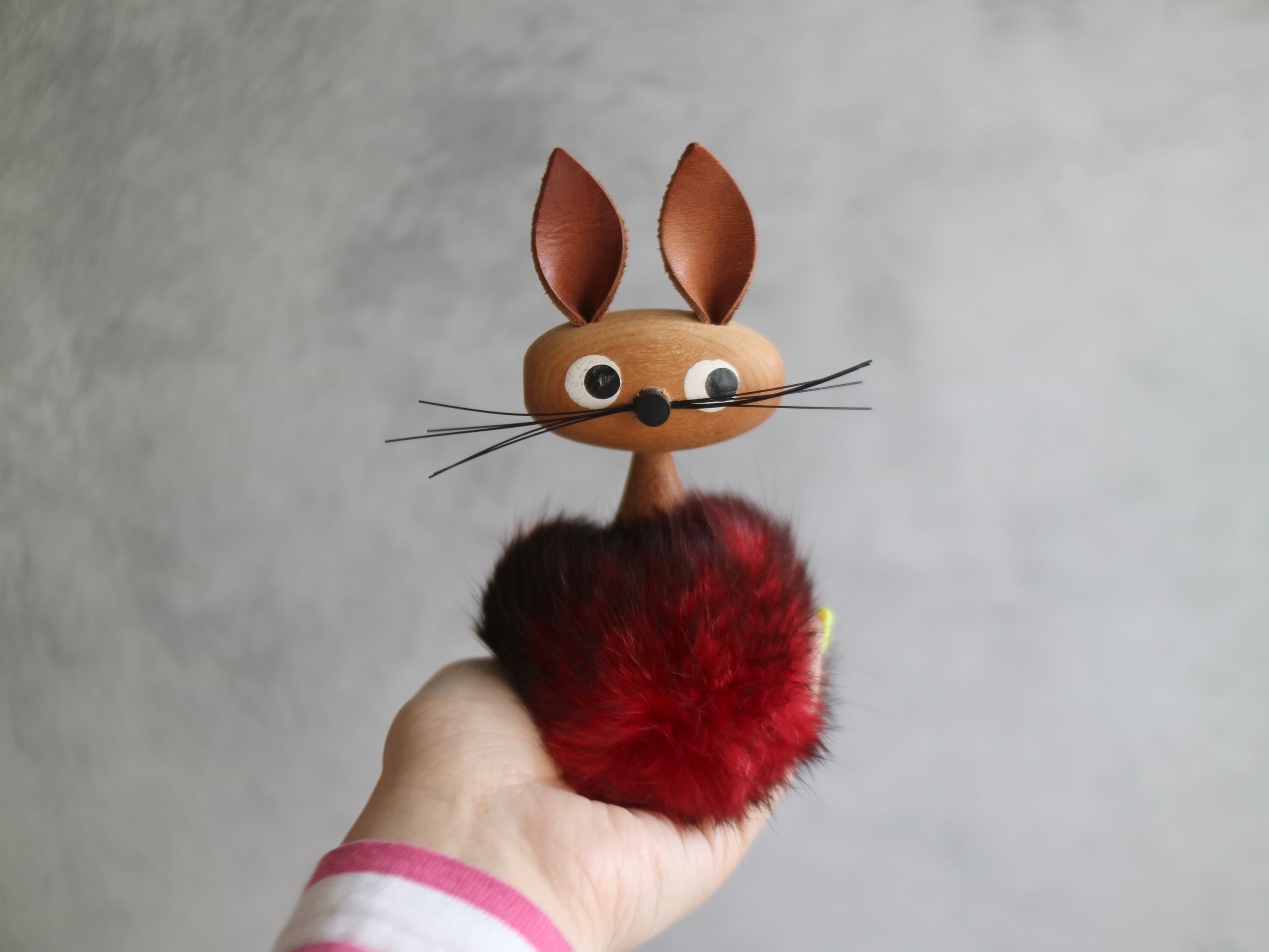 1950-60年代にSWEDENで制作されていたTEAKとファーのうさぎのオブジェが届きました。