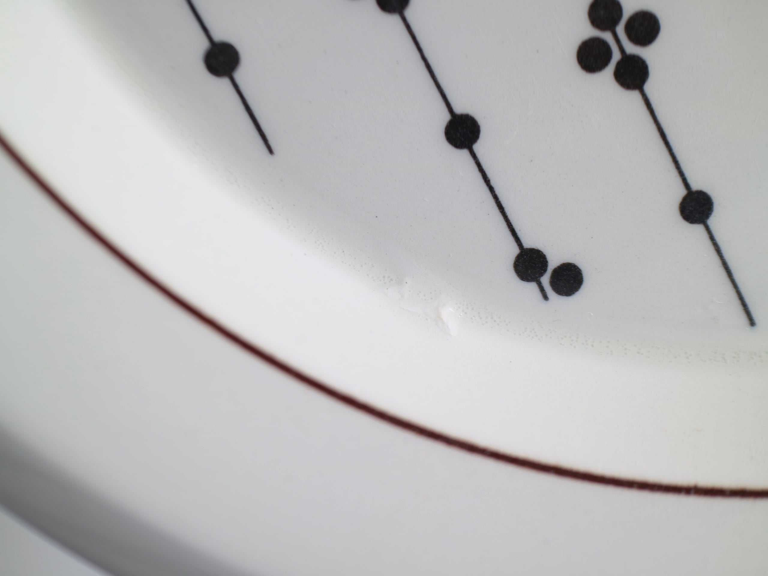 Esteri Tomula(エステリ・トムラ)がデコレーションデザインを手掛け、1973年から1976年の僅か3年間のみ製造されました。黒い模様はスクリーン印刷、茶色の線は手描きで描かれています。