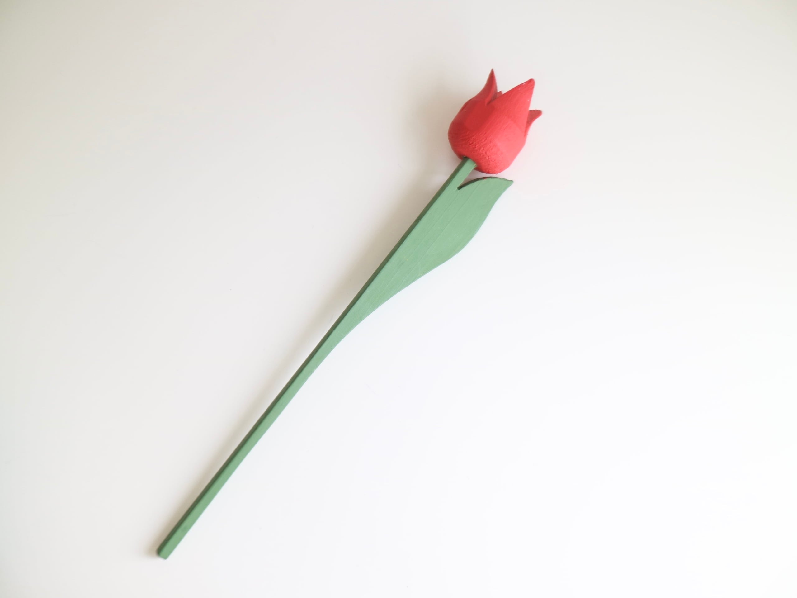 スウェーデンで見つけた木製のチューリップのオブジェです。ハンドメイドで作られており、温かさを感じる作品です。
