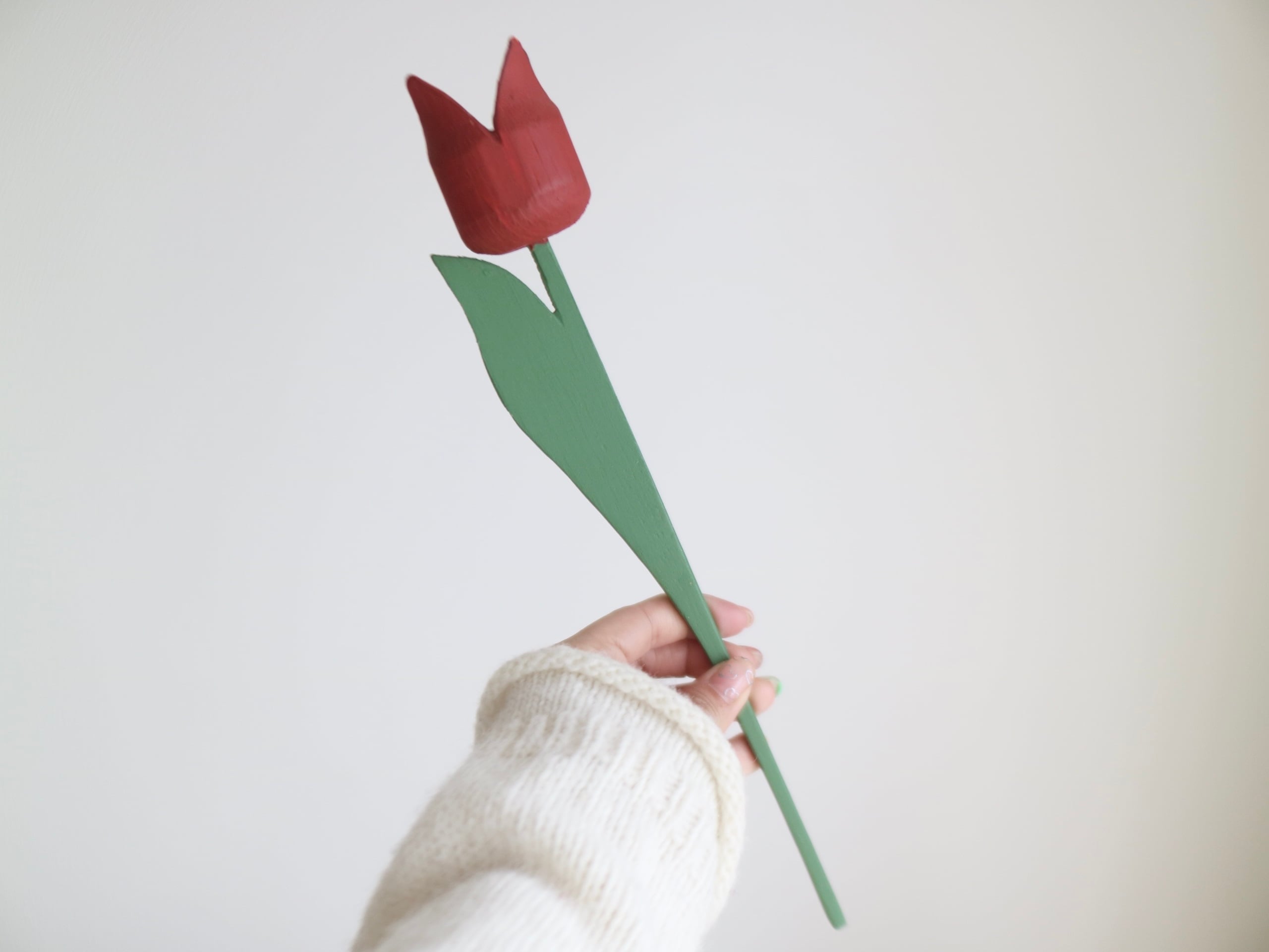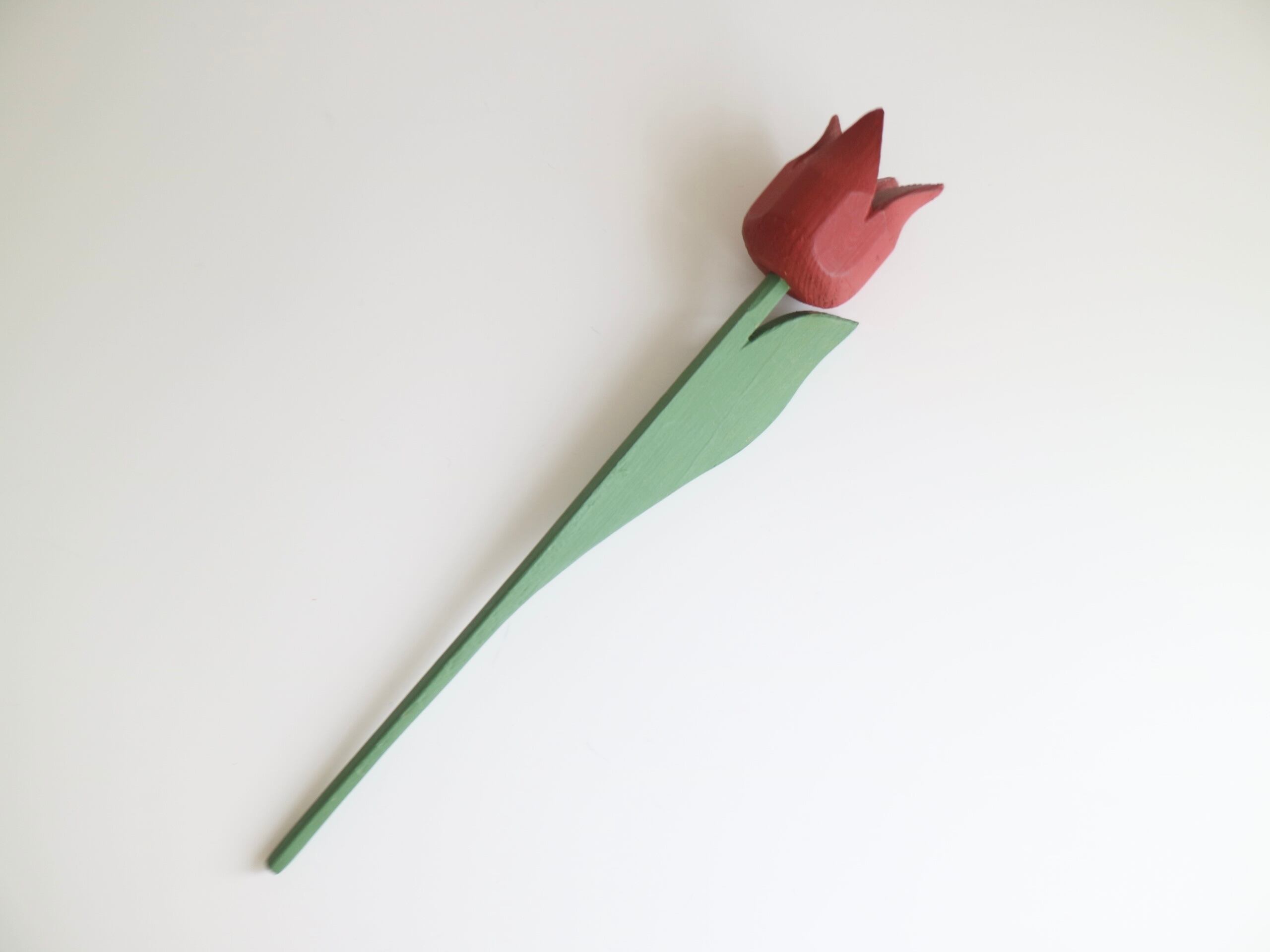 スウェーデンで見つけた木製チューリップ ダークレッド No.5570